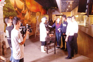 在《常中丞筆記》中,火腿叫做蘭熏,《東陽(yáng)縣志》稱熏蹄,《本草求原》稱南腿,由此可觀,火腿此物名聲深遠(yuǎn),頗受眾人喜愛(ài),不然也不會(huì)有如此多的“小名”。 10月17日這天,浙江經(jīng)視旅游節(jié)目《48小時(shí)》攝制組團(tuán)隊(duì)在中國(guó)火腿博覽館、世界火腿博覽館開(kāi)始了“火腿”的探索之旅,從起源伊始談至繁華盛宴,期間故事種種萬(wàn)千。 從中國(guó)火腿博覽館入口處的“百姓勞軍圖”便開(kāi)始了這場(chǎng)對(duì)話。而在博覽館內(nèi)的火腿制作流程雕塑則完全將攝制組吸引,無(wú)論是考驗(yàn)刀工的制作火腿頭道工序——修胚,還是考驗(yàn)“鹽功”的——上鹽環(huán)節(jié),都深