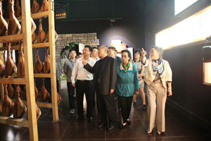 6月28日下午,省人大常委會(huì)副主任馮明一行在金華市人大常委會(huì)副主任陳志身等的陪同下,參觀考察了建于金字火腿內(nèi)的中國(guó)火腿博覽館和世界火腿博覽館,了解金華火腿的行業(yè)發(fā)展現(xiàn)狀。 金字火腿總經(jīng)理吳月肖向馮明一行介紹了金華火腿的歷史文化、傳統(tǒng)制作工藝、營(yíng)養(yǎng)價(jià)值和儲(chǔ)存食用方法。馮明指出,金華火腿雖然是一個(gè)傳統(tǒng)行業(yè),但也要跟上形勢(shì),通過(guò)各種渠道進(jìn)行推廣傳播,她特別強(qiáng)調(diào)了互聯(lián)網(wǎng)營(yíng)銷在當(dāng)代企業(yè)發(fā)展中的作用,十分關(guān)心企業(yè)在這一方面的發(fā)展……
